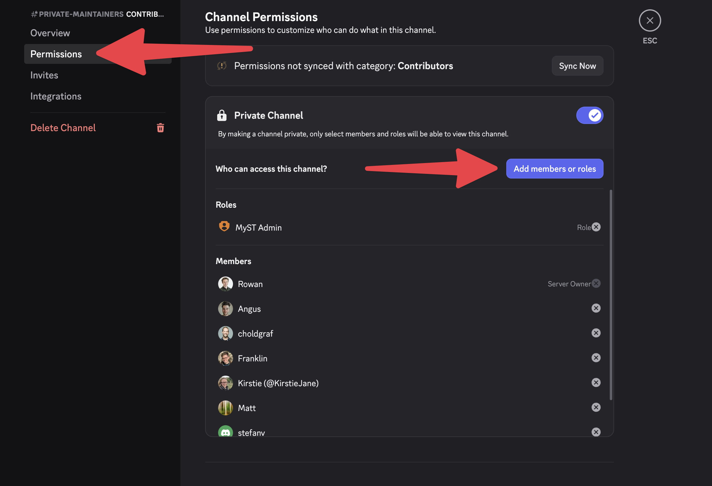 Add members or roles: